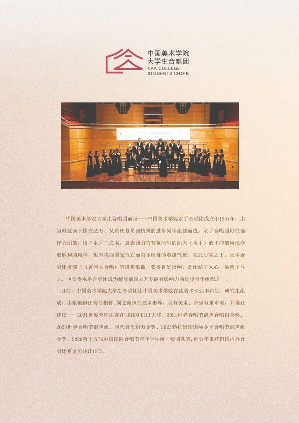 11月24日晚,中国美术学院校大学生合唱团在浙江音乐学院音乐厅举办无伴奏合唱作品专场音乐会。本场音乐会由校团委主办,校大学生艺术中心承办。校大学生合唱团同学用11首高难度无伴奏合唱作品,为观众献上了一场音乐的饕餮盛宴。