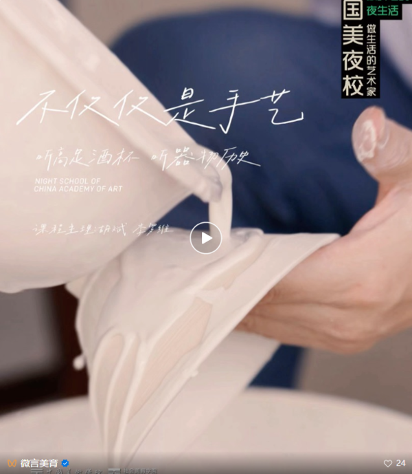 中国美术学院社会美育学院于2023年底推出了“国美夜校”项目,自开设以来,学员人数已达1500余人,注重课程的寓教于乐和服务的精细有序,课程涵盖多种门类。通过多样化的课程设计,增强学员的体验感和收获感,实现人人皆学、处处能学、时时可学,满足不同人群多样化的学习需求和精神文化追求,共同促进精神生活的丰富与充实。