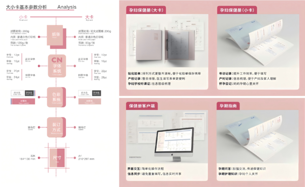 通过三钻模型的指导,设计师通过设计行为从设计层面、信息层面及系统化设计层面对大小卡进行优化,大幅度改善了上述问题,并改善了孕妇的孕期体验,增加了孕妇群体的情感的幸福。