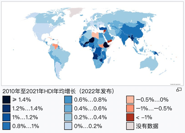 2022 年公布的 2010 年至 2021 年 HDI 年均增长率