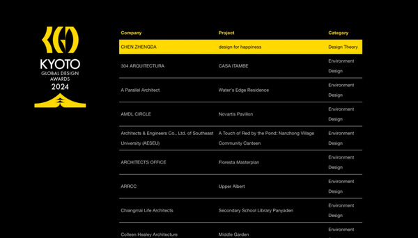 陈正达教授的“为幸福而设计”在作为2024年京都全球设计奖(KGDA)“设计理论类”唯一年度获奖榜单。