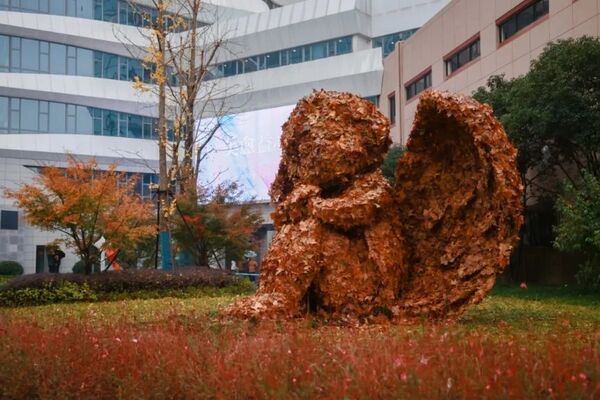 同时,中国美术学院“秋叶艺术节”活动也第二次走进浙大邵逸夫医院,去年的网红“落叶兔”完成使命,象征爱与美好的“落叶天使”整装上岗,翅展状若爱心,矗立在草坪之上,为医院带来了全新的生机和活力。