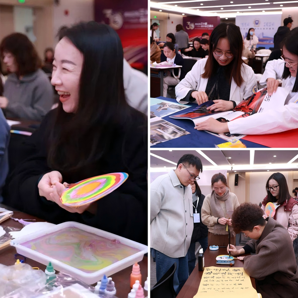 活动现场,浙大邵逸夫医院的员工、志愿者们还参与了中国美术学院学生们带来的特色艺术体验课程,在专业人士指导下,完成水拓团扇和拼贴画报的创作,亲身感受艺术的疗愈魅力。水拓团扇的制作过程中,颜料在水面上晕染开来,化作一幅幅生动的画面,与团扇融为一体。每一件作品都独一无二,承载着创作者的心情与想象。拼贴画报则以鲜活的素材和个人创意组合,记录下内心的故事与情感表达。通过艺术的方式疗愈身心,参与者们不仅收获了美的体验,更在创作中感受到了平和与放松。这场艺术之旅,展现了艺术在生活中潜移默化的治愈力量。