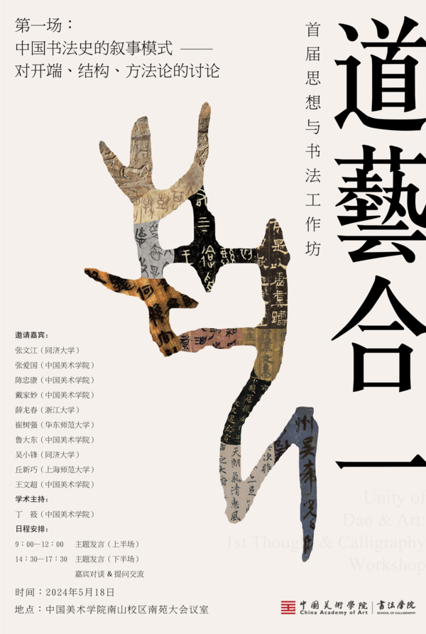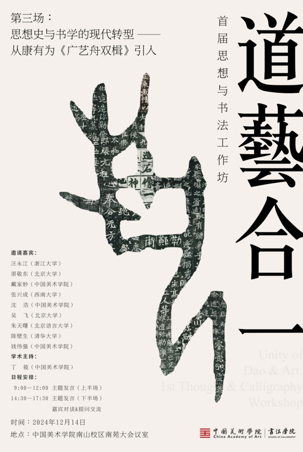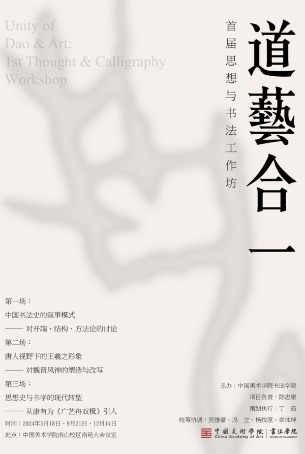 作为“双一流”建设一流学科项目,中国美术学院书法学院主办的“道艺合一:首届思想与书法工作坊”,于2024年5月18日、2024年9月21日、2024年12月14日,在中国美术学院南山校区分别举办了三场有规模、有主题、有延续性的深度研讨&对谈活动。