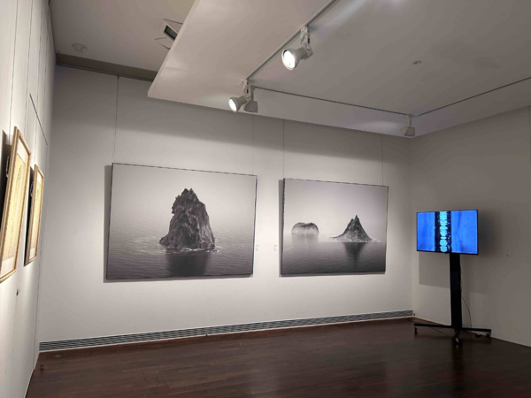 中国艺术家高世强与日本艺术家池田嘉人将屏幕作为链接人与山水自然之间的沟通媒介,在诗意的韵律中将观众进一步推入唐诗之路江海远渡的现场。唐诗之路从浙东出发,所见之景皆为江,富春江即为其中重要的一段。高士强作品《山水:富春江作为方法》以中国文人美学的视角进入山水之中,展现了富春沿岸山水的清润与浑厚。而江河相汇,入海渡远,这时回望身后,江到海的奔流早已真切地从想象流入现实,日本艺术家池田嘉人的影像作品《recollection》在云端俯视着太平洋层层推卷的蔚蓝的浪花。生命经验于是在奔流中扩大,在连海里通达。