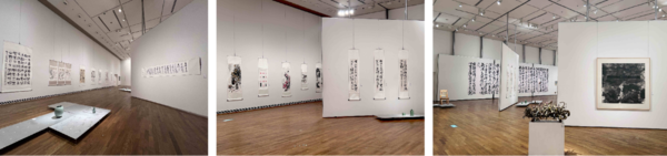 展览的尾声以李白诗“今人虽不见古时之月,但今月依然照古人”,与开篇序厅里的“江畔何人初见月,江月何年初照人”呼应,再次把对时间流逝与永恒不变的思考投回视野之中。同样在序厅中曾出现的金石学专家许力和著名书画家林海钟先生在尾声处共同合作,将拓印与绘画结合,以今会古,共做一幅《唐“怀素好素”陶瓶的拓本博古图》。最后以沈定庵老先生曾为第一届青山行不尽所写的书法《尽得风流》结尾,回看唐诗之路系列展览的同时,在展厅中完成了跨越同“空”异“时”和同“时”异“空”的对话。梭古渡今,跨越时空的完成一次关于唐诗的行走。