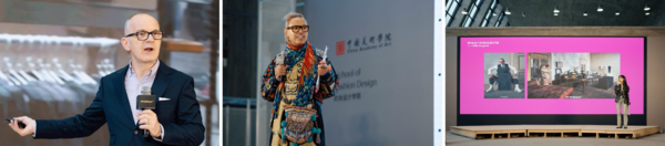 出席开幕式的领导和嘉宾有:中国美术学院党委副书记傅巧玲,中国美术学院时尚设计学院副院长(主持工作)凌雅丽,创新设计学院副院长、AI中心常务副主任于朕,上海时装周组委会秘书长、上海服装设计协会常务副会长吕晓磊,ACTIVATION PR总经理包一峰,帕森斯设计学院前院长Simon Collins,赫尔辛基艺术设计大学前校长、芬兰阿尔托大学艺术设计与建筑学院前院长、中国美术学院特聘教授Helena Hyvönen,中央圣马丁时尚设计研究生预科系主任、本科时尚设计印花系高级教师、英国皇家艺术学院研究生导师David Kappo,歌力思集团事业合伙人、集团董事兼创意总监王笃森,波司登品牌设计总监Pietro Ferragina,晨风时尚创意产业园副总经理张霄鹏,Ontimeshow创始人顾叶丽,CanU参聿可持续平台创始人崔丹,《卷宗Wallpaper*》主编邓圆也,HAIZHENWANG品牌创始人兼创意总监王海震,Masha Ma品牌创始人兼创意总监Masha Ma,RUIbuilt品牌创始人兼创意总监周睿,Penultimate品牌创始人兼创意总监高翔,TANCHEN STUDIO联合创作人陈殷珏。开幕式由中国美术学院时尚设计学院党委书记李昭主持。