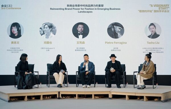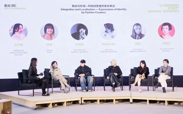 在全球化与本土化同时发生的今天,作为时尚创意者,中国设计师应该如何在自身的文化背景下进行身份的表达与重塑,如何打破艺术、生活和设计的界限,处理当代时尚艺术创作与商业及社会价值转化之间的复杂关系,又该如何在国际舞台上展现自己的声音。第四场会议以“融合与在地—时尚创意者的身份表达”为主题,由王书莹主持,王海震、Masha Ma 、陈殷珏、周睿、高翔 作主题发言。