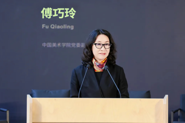 傅巧玲回顾了中国美术学院在艺术创作与设计教育领域的卓越成就,特别是时尚设计学院成立以来取得的显著成果,如牵头成立中法时尚设计发展委员会,学生在全国赛事中屡获佳绩以及成功举办未来时尚生态探讨论坛等。