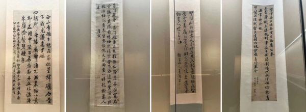 此外,文徵明亲友团们的作品也在同一时空中相汇,包括他的绘画老师沈周的行书《五言诗扇面》(天津博物馆藏),古文老师吴宽的行楷书《弘治癸丑廷试读卷》诗轴(天津博物馆藏),师友祝允明的行草书《归田赋》《乐志论》《嵇康酒会诗》册(天津博物馆藏)、行书《七律寿诗》轴(故宫博物院藏),好友唐寅的行书《吴门避暑》诗轴(辽宁省博物馆藏),忘年交王宠的草书《五言诗轴》(故宫博物院藏),学生陈道复的行草书李白《春夜宴桃李园序》卷(湖南博物院藏)等。