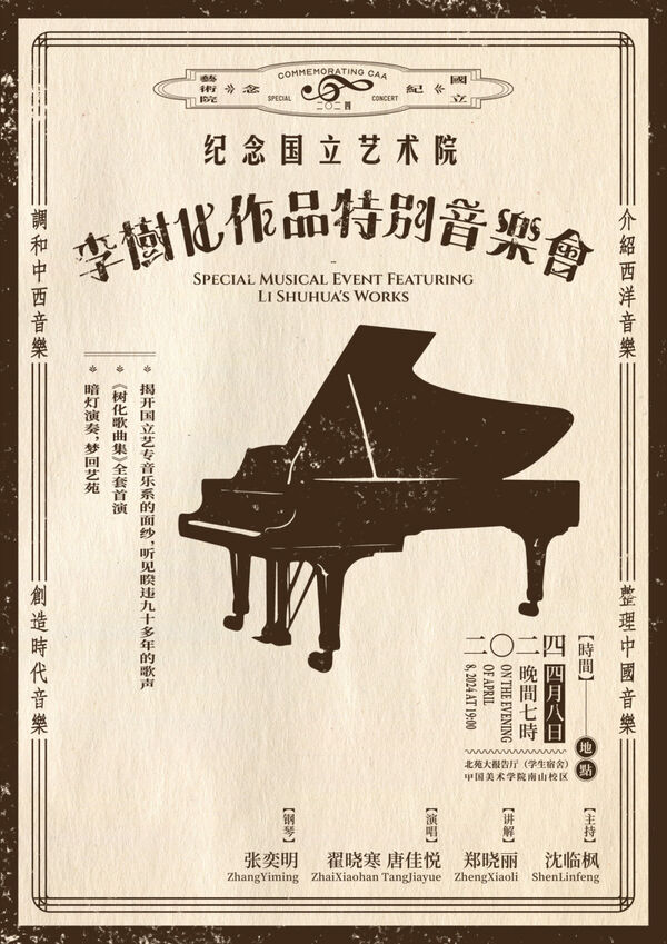 2024年4月8日,国美发布2024活动开场上演了三首李树化音乐作品。当日晚间七点,在同一场地举办的“纪念国立艺术院——李树化作品特别音乐会”吸引了中国美院师生与社会各界的目光。