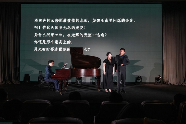 随后上演的《柳枝与竹枝》以一段旋律将贺知章《咏柳》和顾况《竹枝曲》两首唐诗链接在一起,代表李树化歌曲中“一曲容多词”现象。先前《树化歌曲集》中演到的二部合唱《流星》与另一首二部合唱《流水》实为同一旋律曲调,后接下来即将演奏演唱的《酌酒与君》与《客家山歌》也同样如此。两首歌曲,虽然前者是根据古诗词创作的歌曲,而后者用客家话来演唱的山歌。同一曲调下,如此风格迥异的音乐特色,体现了李树化艺术歌曲创作多元的特色。