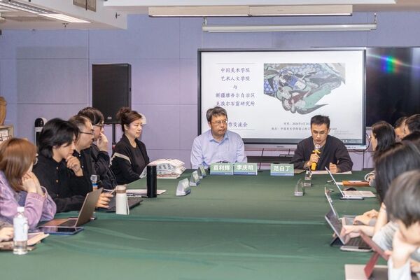 克孜尔石窟研究所所长李庆明通过线上视频参会,他表示非常期待与中国美术学院艺术人文学院建立合作关系,这将进一步推动龟兹石窟历史文化价值的挖掘、传承、弘扬和保护。希望此次合作能充分发挥双方在科研和人才培养等方面的优势,共同携手将龟兹所蕴含的中华优秀传统文化保护、传承和弘扬好。