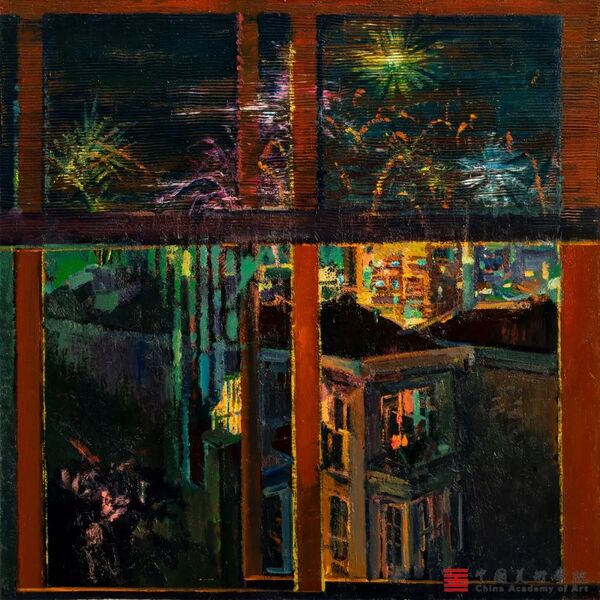 《夜窗之烟花》 100x100cm 布面油画 2016-2021年