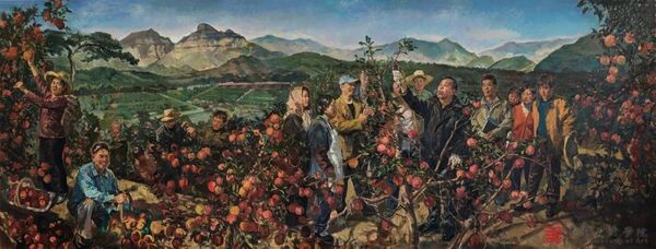 《太行山上的新愚公——李保国》 郭健濂、井士剑、褚朱炯 油画 300x800cm 2017年 中国国家博物馆藏