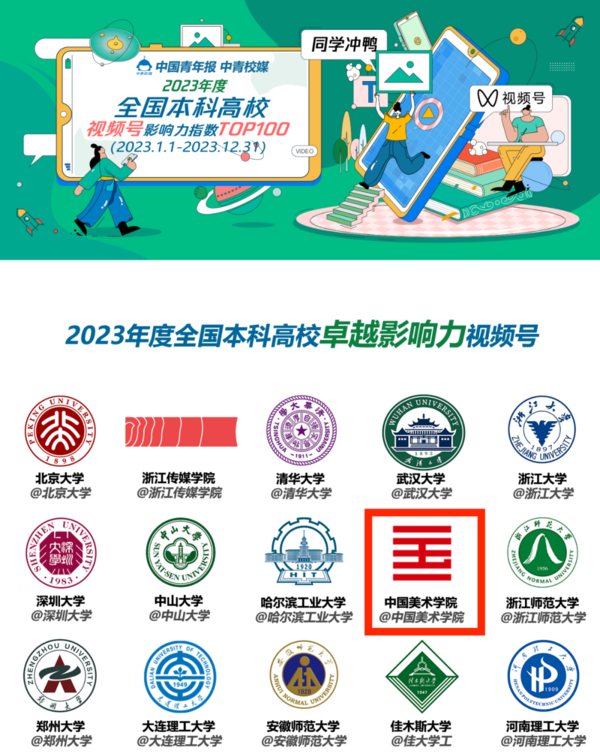 中国大学生在线年度全国高校官方视频号综合影响力第三