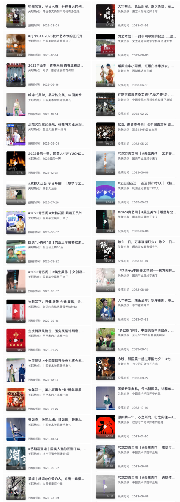 这一年,国美校媒踔厉奋发,开拓渠道,进一步打造“六美一打卡”(美境、美生、美作、国美人、节气之美、国美观、打卡CAA )创作模式,在创作中与师生实现情感共鸣,让宣传直抵人心。
