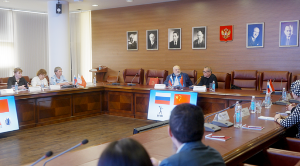 VGIK校长V. S. Malyshev参与了此次会议,第一副校长I. V. Zernova、副校长Korotkov I.N.、以及学院院长兼国际关系系主任T.F. Tursunova也一同出席。