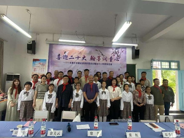 在老师们带领下,淳安县汾口镇龙川小学的139名小学生,以“喜迎二十大 翰墨润童心”为主题,共同创作百米长卷绘画作品,用手中的画笔展现国富民强、国家欣欣向荣蓬勃发展的美好景象,表达了少先队员对党和祖国、家乡的无限热爱之情。自2014年6月起,由农工党浙江省委会发起、在中国美术学院党委统战部和淳安县教育部门的大力支持下,“放飞的色彩”艺术支教活动项目落户汾口镇龙川小学。八年来,支部党员们始终坚持助学志愿活动初心,通过开展艺术支教助教活动,不断在山里孩子的心中播种下美的种子,以美术特有的魅力和力量,打开小朋友知识和创造的另一片天空,让龙川小学的校园不仅有琅琅的书声、悠扬的歌声,还有小朋友们对美术的浓浓热爱、对未来生活的美好向往。
