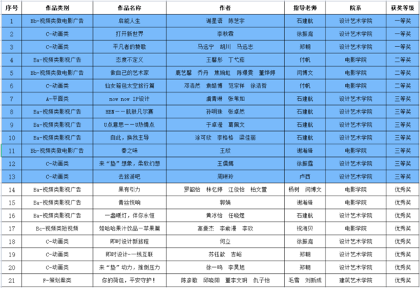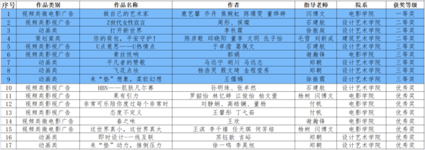 中国美术学院大广赛获奖名单