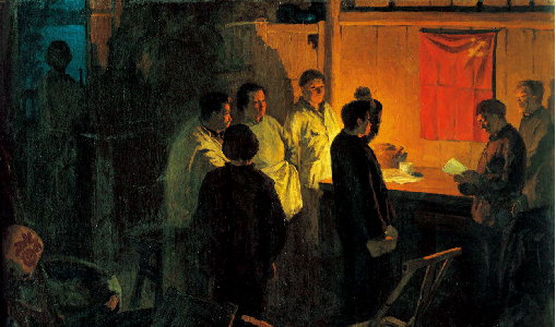 入党宣誓 莫朴 油画 118cm×170cm 1950年 中国美术学院美术馆藏