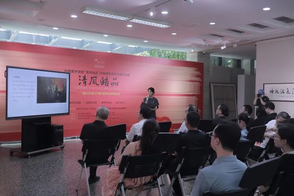 中国美术学院“清风皓品”主题作品展开幕式现场,宣讲团开展“学党史、话清廉——艺术作品中的党史故事”主题讲演,选取党史、清廉题材艺术作品进行解读赏析。一个个生动的故事、一句句掷地有声的论述,带领大家从党的百年非凡历程中感悟真理的力量。