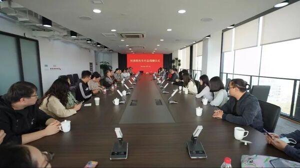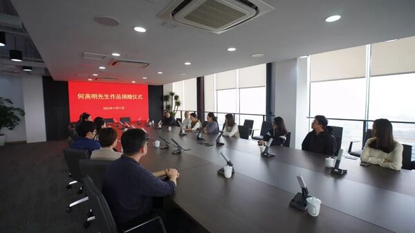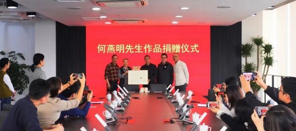 何燕明先生的子女何布先生、何薇女士,中国美术学院副院长曹晓阳,美术馆总馆长杭间,雕塑与公共艺术学院院长班陵生,博士生、硕士生代表以及相关部门工作人员参加捐赠仪式。