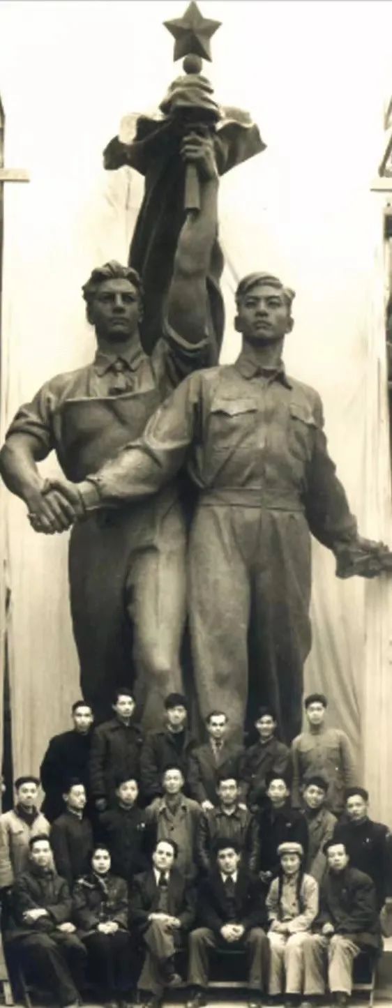 1954年在上海中苏友好大厦完成主题雕塑《中苏友谊像》后合影(一排右一为何燕明)