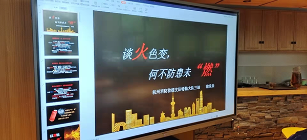 杭州消防救援支队特勤大队三站指导员建乐乐以案说“火、患”、身边的消防设施、火灾处置与逃生、消防安全小常识等四方面系统介绍校园安全基本知识与技能,着重排查学校作为特定场所可能存在的安全隐患,指导明火扑灭演练实训。