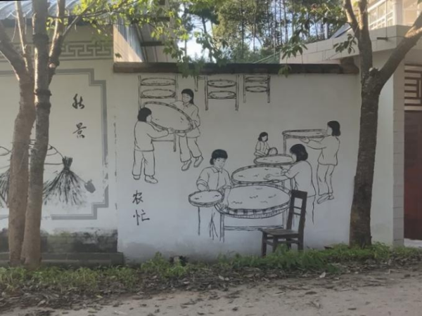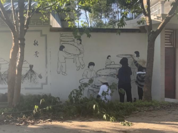 2021年9月20日,中国美术学院第二十三届研究生支教团应山冲村民委员会的邀请,前往山冲村进行墙画修补与创作,推进文明乡村建设。