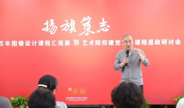 6月23日下午,一堂富有“国美味”的专业课转化为“扬旗策志—建党百年设计课程成果汇报展”在中国美术学院专业基础教学部展厅展出。中国美术学院副院长曹晓阳宣布展览开幕,宣传部、学工部、教务处、马克思主义学院、兄弟院系负责人与专业基础教学部领导班子、师生共同参加展览开幕式。