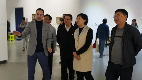 11月7日下午,“肖峰宋韧:艺术生活的记忆&林晨曦·肖像”画展开幕式及研讨会在扬州肖峰宋韧艺术馆举行。扬州市新城党工委书记杨蓉宣布展览开幕,新城管委会副主任唐朝文,本次画展策展人、俄罗斯圣彼得堡国家经济大学客座教授Luca Zordan致辞,参展艺术家、原中国美术学院院长、著名画家肖峰,中国美术学院副教授、著名画家宋韧,中国美术学院副教授林晨曦致答谢辞,新城社事局局长申圣玺主持开幕式。