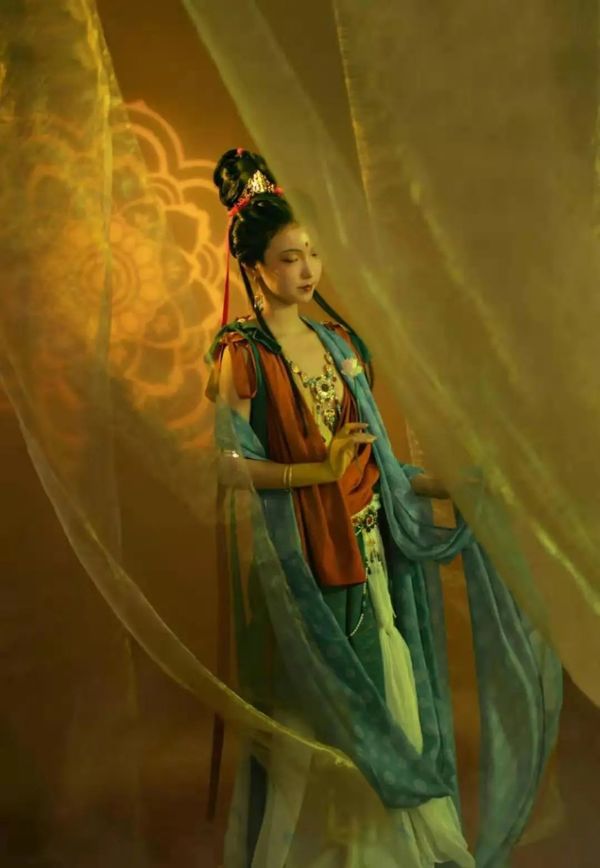 其实这是一个相辅相成的关系。当汉服模特是我的兴趣之一,它与我的课程内容也是有联系的。这次布展我就选择了古代服饰文化这个角度作为切入点,展现敦煌舞女飞天的魅力。真正热爱的东西要坚持下去,不论学业还是工作都有很多我要学习的地方,这个过程我是比较享受的。