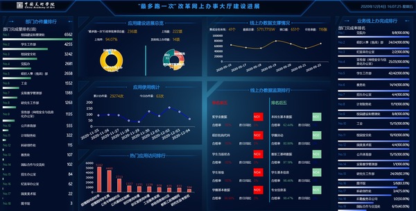 深入贯彻浙江省关于加强“最多跑一次”改革的理念和目标,凝聚改革共识,整体协同推进,建设校务服务网上办事大厅,同时进一步打破各部门之间的数据壁垒,建设数据中心和数据服务大厅。系统梳理全校办事服务事项共235项,100%实现“最多跑一次”。新增网上办事流程104项,通过网上办事大厅办理事项2.8万余次。升级移动OA办公平台,实现网上收发文管理。