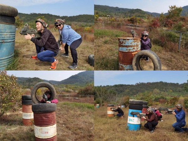 青年老师们积极投入到各项精彩的拓展活动中,“真人CS镭射战”中增加信任、牢固情感;“缅甸桥”上大胆细心,施展手脚;“滑草”的速度与激情中突破自我;“小火车”上环游园区,乐在其中;“划皮艇”中愉悦身心,默契合作;“射箭与骑马”中,英姿飒爽,策马奔腾。
