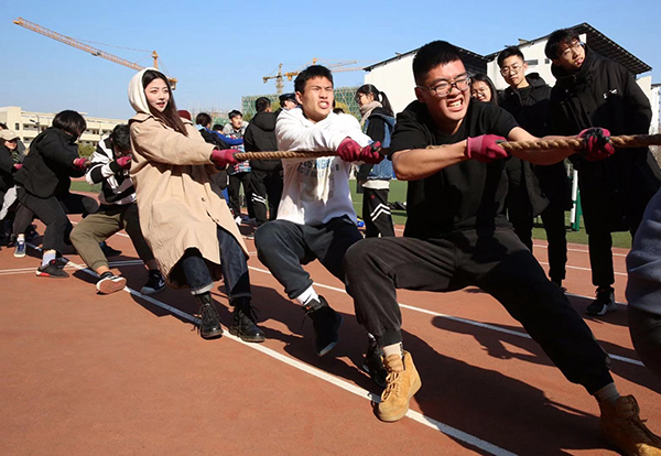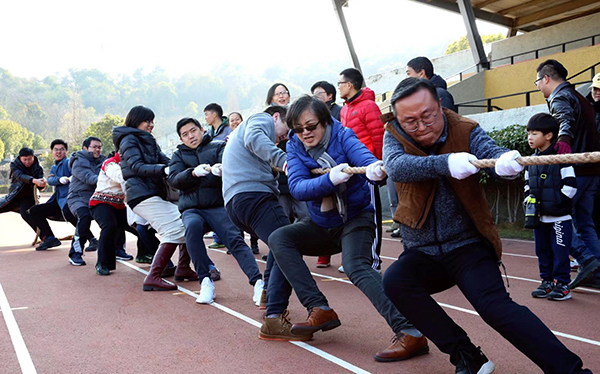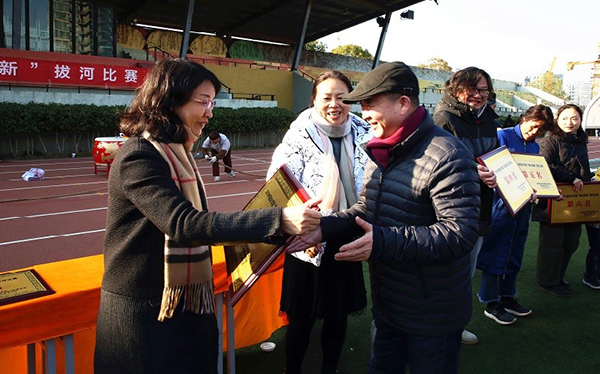 为丰富我校师生的课余文化生活,促进全院师生之间的交流,增强师生间的集体凝聚力与团队协作能力, 12月31日,我校在象山校区、南山校区同时开展了迎新拔河比赛。校体育运动委员会主任姜玉峰,校体育运动委员会副主任刘正、校党委委员傅巧玲亲临南山校区、象山校区拔河比赛现场,为各院系师生加油打气并颁奖。同时参与颁奖的领导还有工会常务副主席陆晓妹、校体育运动委员会秘书长张杰等。