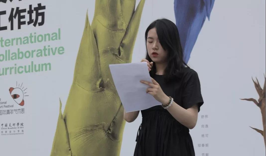 创新设计学院学生代表方铭璐用全英文发表了热情洋溢的致谢辞。她衷心感谢中国美术学院创新设计学院的领导和全体中外教师,为同学带来这样丰富的跨学科、国际化教学内容,让同学们充分体验到一场教与学、学与玩、玩与识的综合设计思维和创作实践课程。