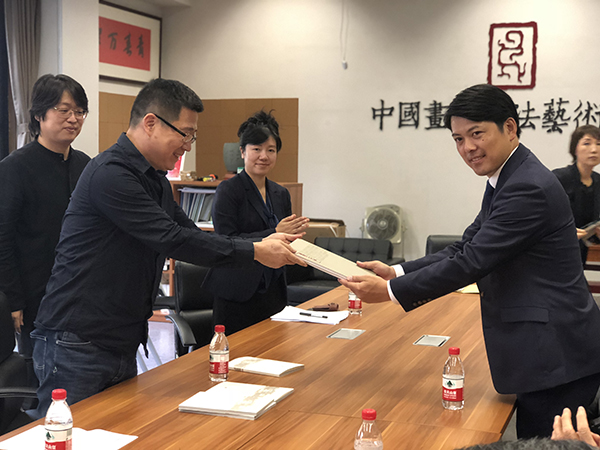杭间副院长致欢迎词,他指出杭州是一所拥有深厚历史文化底蕴的城市。中国与日本的交流不仅频繁而且多元、跨界、深入,特别是中国书法和日本书道,两者同源同宗,却各自彰显了自己的特点,希望今后能加深两国之间青年一代的文化交流,以增进两国之间的和平友好的情谊。