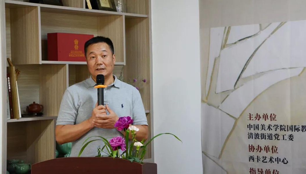 开幕式上,中国美术学院国际教育学院院长金志林,清波街道党工委组织委员吕火良分别致辞,表达了对此次画展的支持和对各方的感谢。