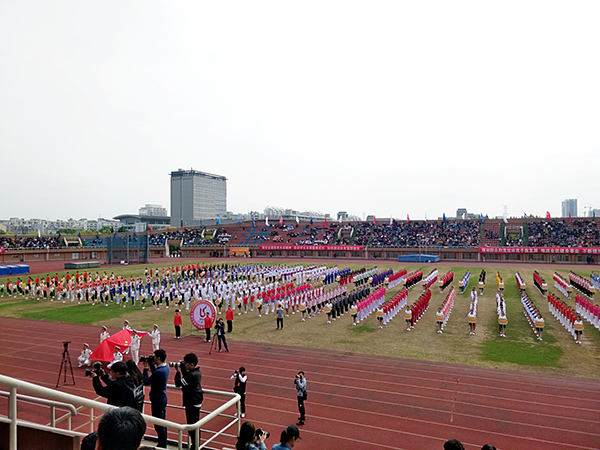 开幕式上,惠风和畅,春和景明,让人心头仿佛撒满了阳光,“阳光项目”不负其名。首先进行的是广播体操的比赛,该项目既是比赛,又是开幕式的展演项目,由我校张杰教授总负责,梁若雯老师配合具体执行与组织,各代表队多彩的服装和整齐的动作构成的全幅画面蔚为壮观,我校代表队一身红蓝相间的队服格外醒目,加上与节拍完美结合的动作,最终荣获甲组一等奖,为其他项目的参赛运动员注入强心剂。