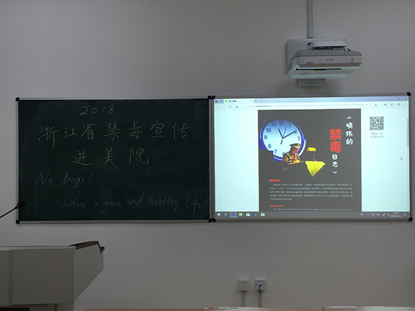 为积极响应省教育厅《浙江省教育厅办公室关于组织观看2018年禁毒宣传进高校暨百场禁毒文艺巡演启动仪式网络直播的通知》文件精神与要求,加强对我校国际学生群体的禁毒宣传教育,提升国际学生识读、防毒、拒毒意识和能力,11月13日晚,我校国际教育学院组织全体本科生于国际教育学院公共课教室收看2018年禁毒宣传进高校暨百场禁毒文艺巡演启动仪式暨禁毒情景剧《晓伟的禁毒日志》节目。