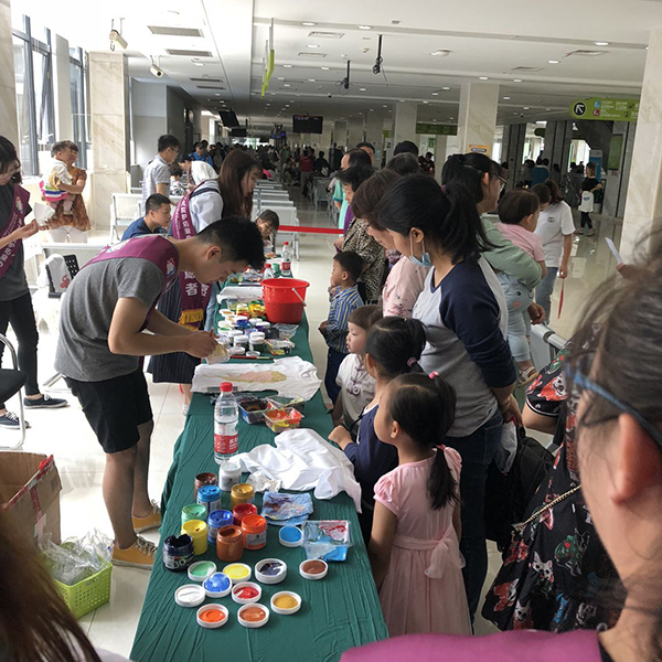 为了使患儿过上一个“健康、快乐、充实”的节日,我校团委与浙江大学附属儿童医院团委早在几个月前就开始精心筹划、组织,并通过微信、朋友圈等多种途径进行积极宣传。同学们在门诊大厅、住院部开展树叶拓印书签制作、T恤DIY绘画、开心泥塑、皮影戏表演等活动。孩子们像走进了儿童乐园,跟着志愿者哥哥姐姐们学做书签、捏泥人、在T恤上画画、看皮影戏。