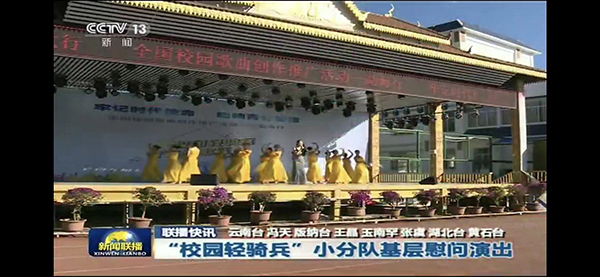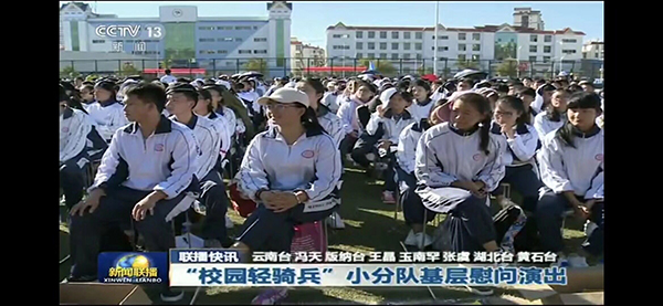为学习贯彻习总书记给内蒙古自治区苏尼特右旗乌兰牧骑队员们回信的重要指示精神,更好地推进“牢记时代使命唱响青春旋律”校园歌曲创作,1月21日、23日,中国美术学院文艺轻骑兵小分队由学工部张艳老师带队,参加中国教育电视台主办的“校园轻骑兵、青春踏歌行”走进云南勐海县第一中学、湖北黄石市第二中学,开展“校园轻骑兵”演出慰问活动,为广大师生送去丰富多彩的精神文化大餐。