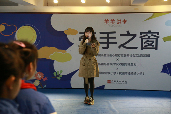 完成“牵手之窗”立人绘制后,本次活动的主持人美院学生许奕珺为大家介绍回顾了“美愿玉岭·心泽长漠”这段纷呈溢彩的项目与经历