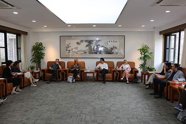 2017年5月17日上午,洛杉矶加州大学银幕中国项目负责人、孔子学院院长Susan Pertel Jain率平面设计、雕塑、表演艺术、建筑、城市规划、策展等领域著名艺术家一行18人来访我院。我院副院长高世名,外事处及部分相关二级学院负责人接待来访。
