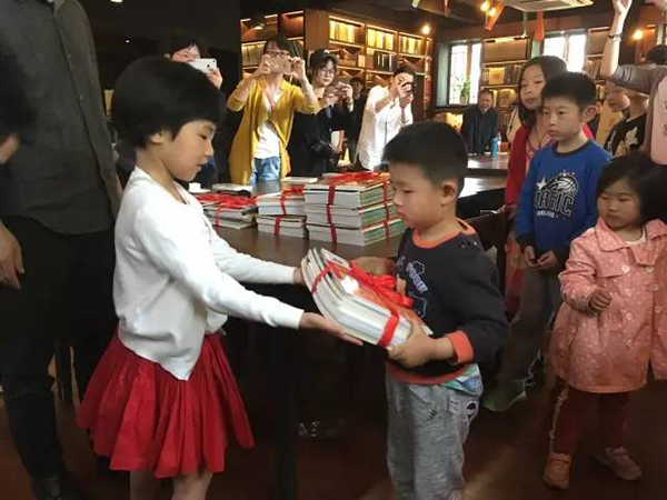 随后,南山书屋举行了赠书仪式,组织者为每个孩子赠送10册图书,均为中国美术学院出版社出版的美术类读物。