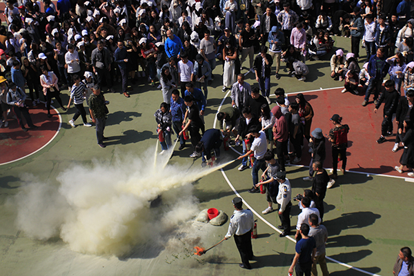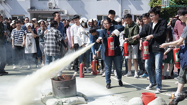 最后,中国美术学院保卫处杜春威老师和胡侃老师分别对疏散和灭火常识进行了详细讲解,广大师生现场观摩了灭火示范性操作演示,并参加灭火实践。
