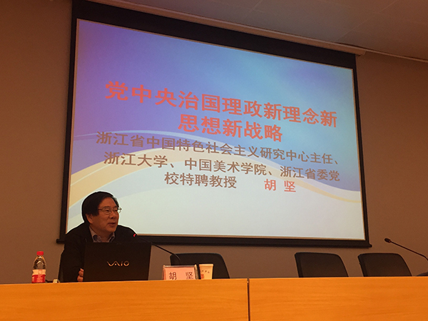 本期读书会特邀浙江省人大常委会常委、教科文卫委员会副主任、我院思想政治理论课特聘教授胡坚为大学生做《党中央治国理政新理念新思想新战略》主题报告。胡坚系统深入地阐述了十八大以来党中央治国理政新理念新思想新战略所形成的脉络及其丰富的内涵,并结合生动的案例与学生干部们探讨了中华民族伟大复兴中国梦、当今社会五大发展理念、适应经济新常态、合作共赢的国际环境等8方面问题,并针对当今社会发展的新趋势、新经验及热点问题,联系浙江实际,提出了许多独到观点。