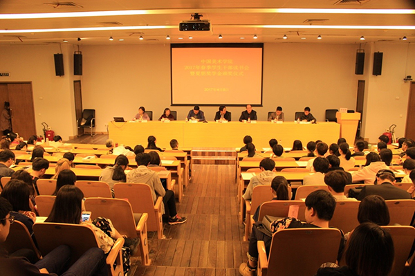 学工部部长竺照轩首先宣读了2017年夏朋(姚馥)奖学金优秀学生、先进集体名单,随后进行了表彰。周逸阳、莫非、周佳儿、王颖怡、陈沛涛、周倩、陈珠、陈侗蓉、赵梓妍、留意、陈翊裴、孙梓钧、刘银行、段昺东、丁雨婕等15位同学荣获夏朋(姚馥)奖学金优秀学生,中国画与书法艺术学院2014级书法与篆刻班、雕塑与公共艺术学院2014级纤维艺术班、设计艺术学院2015级工业2班、影视与动画艺术学院2014级录音班、建筑艺术学院2015级建筑艺术3班、艺术人文学院2013级史论班等6个集体荣获夏朋(姚馥)奖学金先进集体。学生代表中国画与书法艺术学院周逸阳代表获奖学生发言。