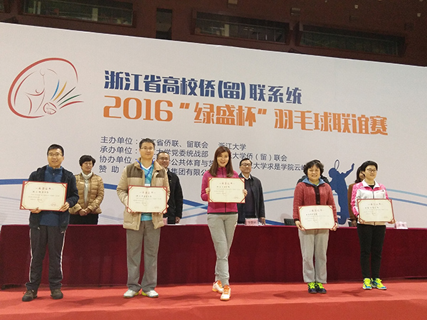2016年11月26日浙江省高校侨(留)联系统“绿盛杯”羽毛球联谊赛在浙江大学紫金港校区体育馆举行。来自浙江大学、中国美术学院等13所高校的一百多名羽毛球高手相聚一起,展开了激烈的角逐,比赛现场气氛活跃,球艺精湛。我院参赛选手精神饱满,顽强拼搏,齐心协力,获得了此次联谊赛团体第五名。队员充分发扬了“以球会友 联络联谊 轻羽飞扬 活力绽放”的活动精神。